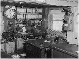 Hagerstown Maryland yard office of the Western Maryland railroad. Several swing-arm resonators can be seen. Three 17-A mainline sounders are clearly visible on the top shelf near the window. Note that three forms of electrical communication are in use here- telegraph, teletype, and telegraph. This had to be a noisy place ! |