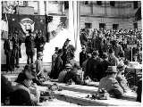 Telegraphers sending press back to their home newspapers at speech by President Roosevelt in October 1936. |