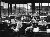 AT&T Long Lines Department Philadelphia No. 2 office August 21, 1943. Morse telegraph is being used to coordinate the cutover of long distance toll circuits from a manual switchboard to the world's first four-wire crossbar toll switching machine. This machine automated the routing of long-distance telephone circuits between Philadelphia and the northeastern US. |