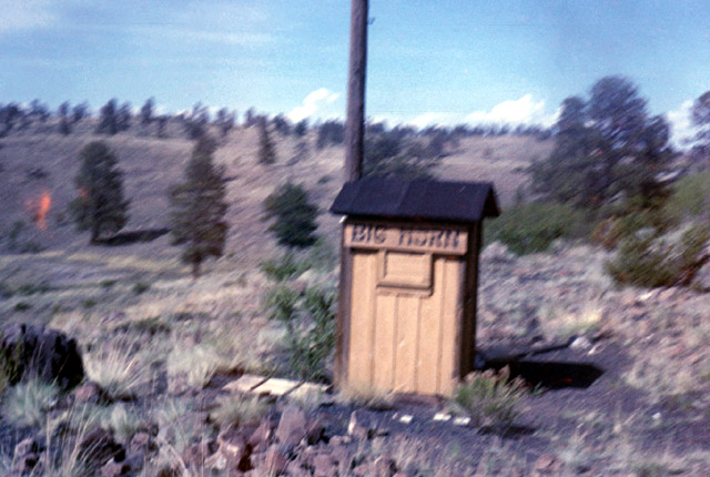 "Phone Booths" were scattered along the line, usually positioned at strategic trouble spots. In addition to the booths, phone boxes could be nailed up anywhere when needed. Railfans rarely photograph such utilitarian facilities. A few images do exist. Here is one from a 1958 fan trip on the D&RGW narrow gauge. This rare image is from the collection of Gary Waite.