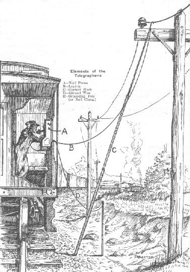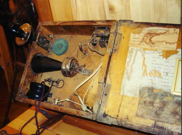 I have little information on telephone equipment. I do know that there were two types of telephones used. The "telegraphone" was designed to be used on telegraph lines. In fact, it was possible to operate both telegraph and telephone simulataneously on the same wire. This is due to the fact that telegraph signals are very low frequency, while telephone voice is higher in frequency. Thus the two types of signalling can be kept seperate using electrical filters. Telegraph lines use only a single wire in combination with the earth to form a closed electrical circuit. This is a disadvantage for telephone circuits, as they will be susceptible to electrical noise from adjacent circuits on the same pole line, electrical motors, power lines, etc. Thus the telegraphone was probably quite noisy and usable only in remote areas such as those found on the narrow gauge.